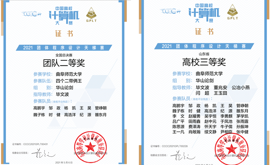 曲阜师大新闻中心讯(通讯员:毕文波 王玉田) 4月24日,第六届中国高校计算机大赛-团体程序天梯赛线上线下同时进行,江南在线登录入口计算机学院、网络空间安全学院共组建五支队伍参加了比赛。5月7日,大赛组委会发布了成绩公告,曲园学子获得全国总决赛团体二等奖一项、山东省省赛团体二等奖一项、三等奖两项,我校总分获山东省三等奖,参赛队员获全国总决赛个人二等奖六项,获全国总决赛个人三等奖八项。
