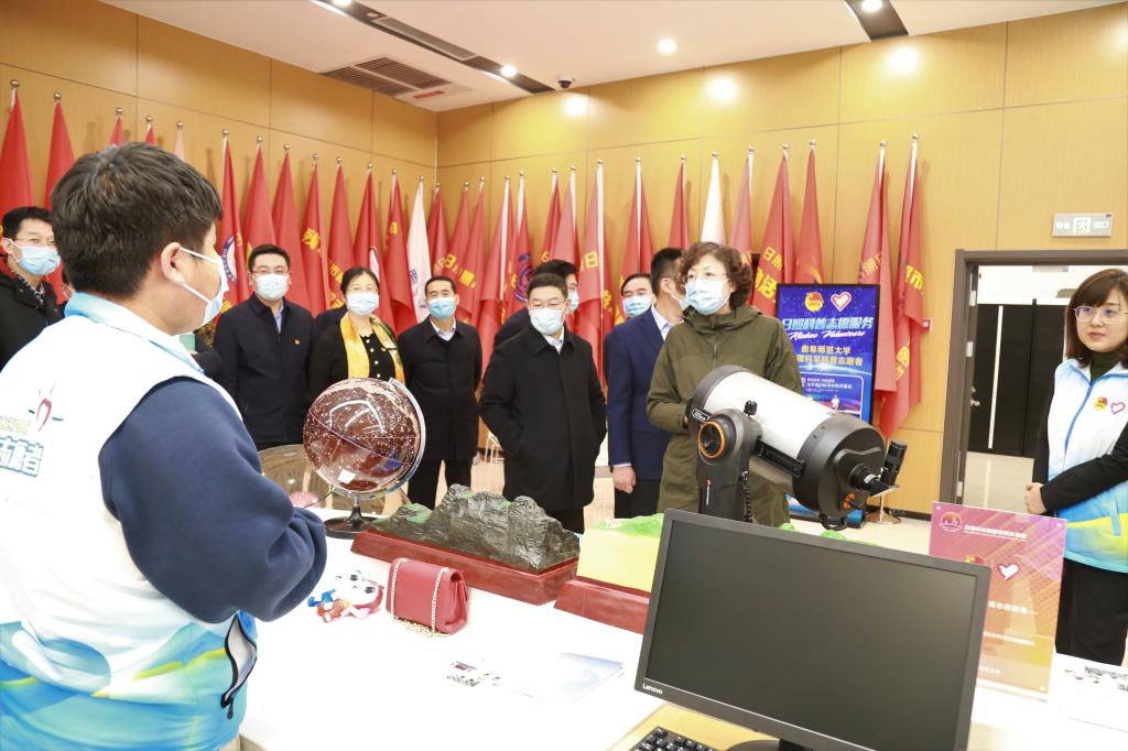 曲阜师大新闻中心讯 近日,我校的两个大学生志愿服务项目首批入驻日照市志愿服务孵化基地。日照市委书记张惠一行视察志愿服务孵化基地时,深入了解了我校志愿服务项目的情况,并与志愿者进行亲切交谈,鼓励青年志愿者发挥专业优势,积极奉献社会、服务城市,并更好地展现“种子”效应,吸引更多力量加入志愿服务队伍,让社会正能量越来越充盈,让日照文明之花开得更加鲜艳。