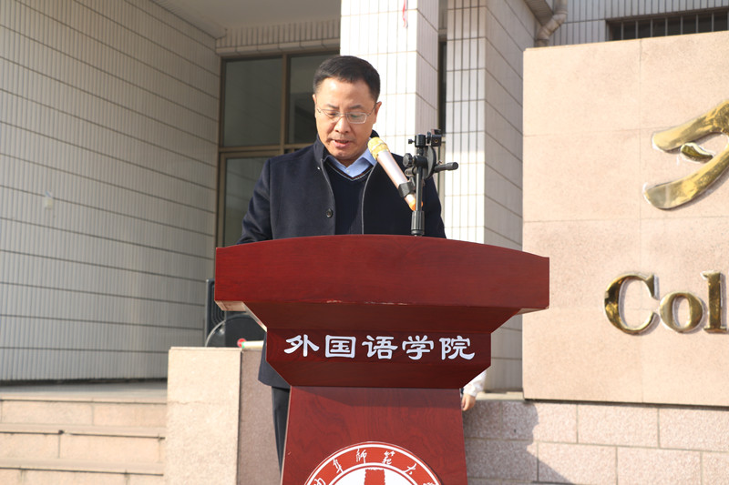 秦洪武代表学院发表讲话,他指出,当今世界大变局正加速演进,为党育人、为国育才的要求敦促着学校、学院坚定时代人才的培养。同时,他希望同学们肩负起历史责任,把握外语文化艺术节这次机会,努力成长为一名卓越的外语人。