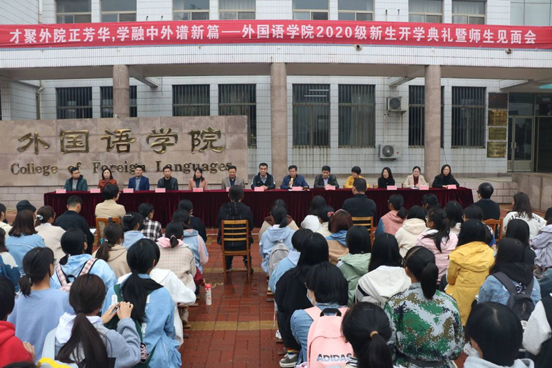 教师代表王福祥教授风趣讲述秉持“决心、静心、恒心”三心,拥有“高远立意、生活诗意”二意。2019级学生丁一诺代表高年级同学讲话,她依据自身经验建议新生要实现学习方法的转变以及专业兴趣的培养。2020级学生李彦祺代表全体新生立志努力成为合格外院人。