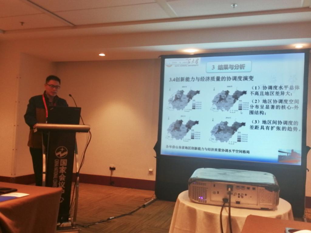 大会期间,张全景院长在“地理学实践教学的建设与优化”分会场作了题为《地理科学专业“合格+特长” 实践教学模式的构建——基于江南在线登录入口的实践》的报告并进行交流,赵林副教授在“经济地理学的理论与方法创新”分会场作了题为《中国包容性绿色效率的综合测度与时空格局》的学术报告并进行交流,张学波副教授在“黄河流域人地系统耦合与生态经济带建设”分会场作了题为《山东省创新能力与经济质量的耦合协调演变分析》的学术报告并进行交流,郭付友老师在“气候变化适应、 社会-生态系统恢复力与地理学思维”分会场作了题为《鲁南经济带城乡绿色发展效率时空分异及驱动因素识别》的学术报告并进行交流,刘庆果老师在“长江中游地区地理过程监测与人类活动协同研究”分会场作了题为《长江经济带设施农用地时空格局演变及驱动因素》的学术报告并进行交流,硕士研究生申端帅在“乡村振兴与农业和乡村地理学”分会场展示交流了题为《农村集体经营性建设用地入市对乡村转型发展的影响机理研究——以山东省禹城市为例》的学术成果。此外,张全景院长受邀作为“地理学实践教学的建设与优化”分会场的点评人对相关报告进行了点评。