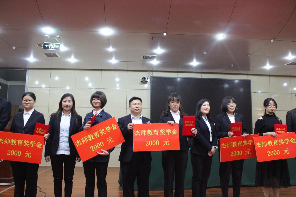 为强化学生的学习主体意识,提高学院学风建设水平,10月30日,翻译学院2019级“译之星”表彰、杰师教育奖学金颁发仪式于图书馆报告厅举行。翻译学院领导班子全体成员,北京杰师教育科技有限公司总经理王博远先生,现代坦迪斯变速箱(山东)有限公司行政部曹寅補部长出席颁发仪式,2019级全体新生参加了本次活动。