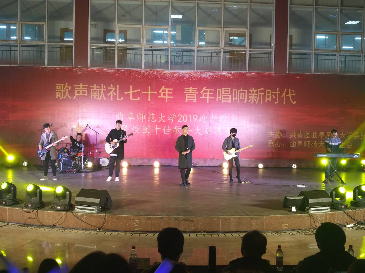 比赛开始前,15位参赛选手共同演唱《歌唱祖国》,为祖国70岁生日献礼。本次比赛歌曲形式多样,英文歌、流行歌、摇滚乐、古风与民谣的穿插,带来多种形式的艺术享受。经过激烈的角逐,赵方舟、李良宇、曹云浩、马维孟、赵鹏五名同学成功晋级第二轮。在第二轮比赛中赵鹏以一首情真意切的原创歌曲《我在曲园》斩获冠军。而亚军,季军分别由马维孟,李良宇夺得。