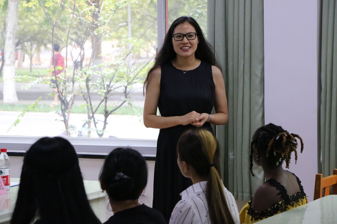 教师代表王晓霞老师对各位同学加入国际文化学院大家庭表示热烈的欢迎,并鼓励同学们在日常生活中多多使用汉语进行交流,积极参加各种活动,在一言一行中感受汉语的魅力,中华文化的魅力。