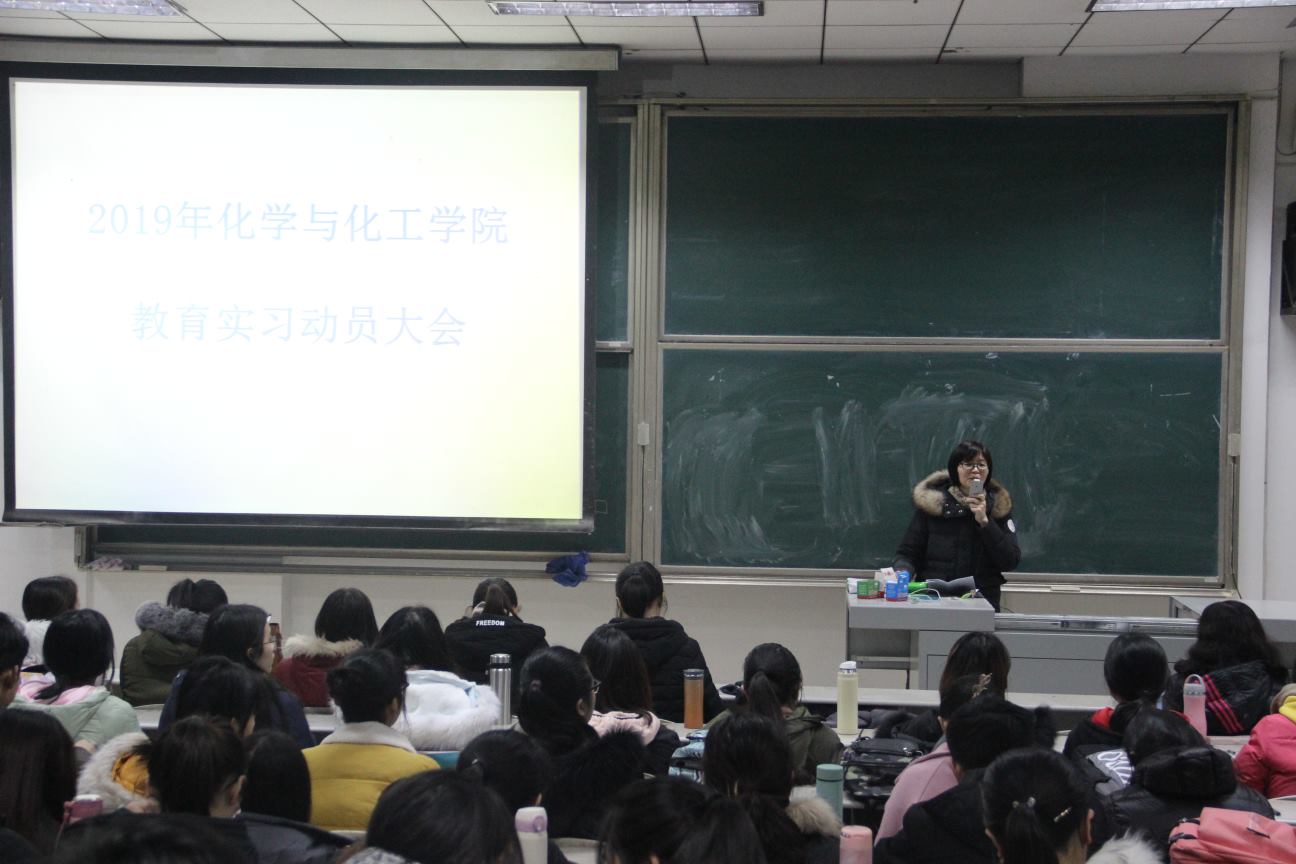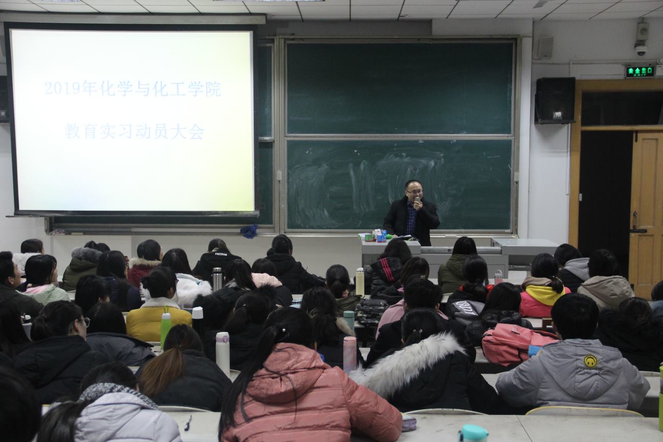 为贯彻落实《江南在线登录入口师范生实习支教工作管理办法》相关规定,保障实习工作顺利开展,1月18日,我校化学与化工学院举行了2016级师范生教育实习动员大会。学院相关负责人、2016级化学专业全体师范生参加了会议。会议由胡蕾老师主持。