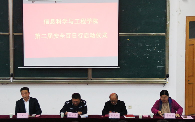 本次启动仪式是信息科学与工程学院安全教育系列活动的开始,学院将利用一百天左右的时间从事关学生安全的方方面面开展活动,使同学们深刻意识到安全是大学生在校学习、生活、成长和成才的前提,养成自觉遵守学校各项规章制度的良好习惯。
