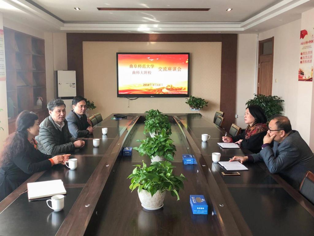 3月13日上午,学校工会主席王万民、副主席茌淑君走访我校附属实验学校,与附属实验学校校长鲁国春、党委书记郭洪洁举行了座谈交流。日照校区管理办公室副主任崔波参加走访和座谈。