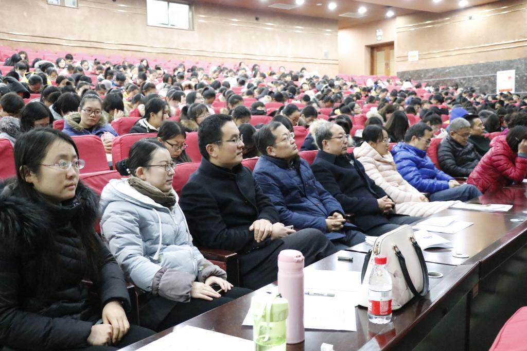 为深入贯彻学习党的十九大精神,准确把握十九大内涵,1月3日,数学科学学院党委书记屈跃宽在大学生活动中心礼堂作了题为“深入学习十九大精神,全力做好数学一流学科建设”的专题党课。数学科学学院师生代表参加了学习。