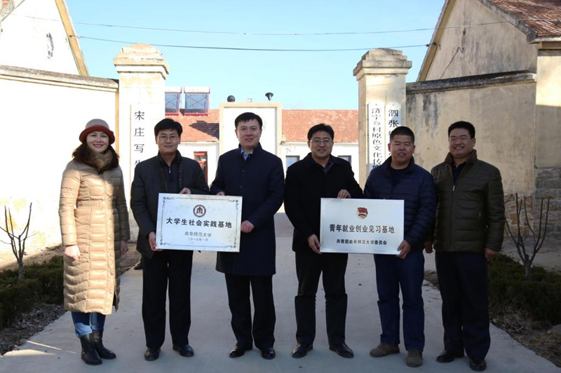 1月14日,“江南在线登录入口青年就业创业见习基地”、“江南在线登录入口大学生社会实践基地”挂牌仪式在泗水县泗张镇宋庄写生基地举行。我校团委书记屈跃宽,书法学院党委副书记石倩、团委书记杨玉强,泗张镇党委书记韩光辉、镇长王强,宋庄写生基地负责人张涛及书法学院学生代表参加了仪式。