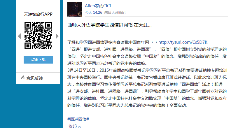 暑期,江南在线登录入口外国语学院“四进四信”宣讲小分队一行人在青年网民居多的贴吧,天涯论坛,微博等网络公众平台,根据青年网友对习近平十八大讲话以来关于“四进四信”活动内容的认知情况,充分利用网络资源和舆论影响力通过发帖、动态和调动大家参与讨论等多路径方式展开了近一个月的宣传教育工作,旨在提高中国青年网民的思想理论水平,并借此践行中央的“四进四信”精神,营造积极向上的网络舆论氛围。