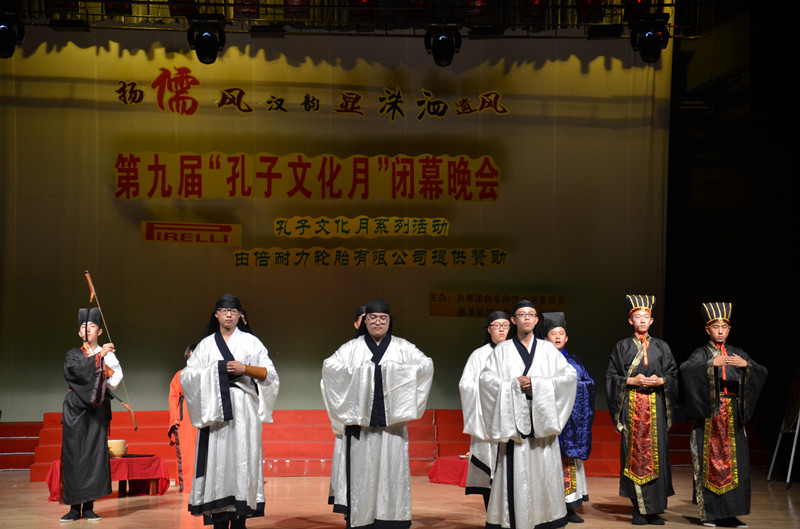 晚会首先回顾了本届“孔子文化月”举办的一系列活动——知名儒学专家满载学术气息的洙泗讲堂,富有传统文化色彩的国学知识竞赛、儒服射礼、成人礼等,生动展现了本届孔子文化月“扬儒风汉韵,显洙泗遗风”的活动主题。