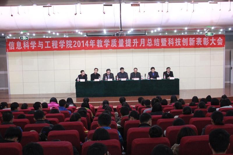 青年学子展风采,科创大赛逞英豪。12月31日下午,信息科学与工程学院举行2014年教学质量提升月总结暨科技创新表彰大会。学校纪委书记郭辰夫,华为高级讲师代表肖宗鹏,信息科学与工程学院相关负责人出席本次大会。