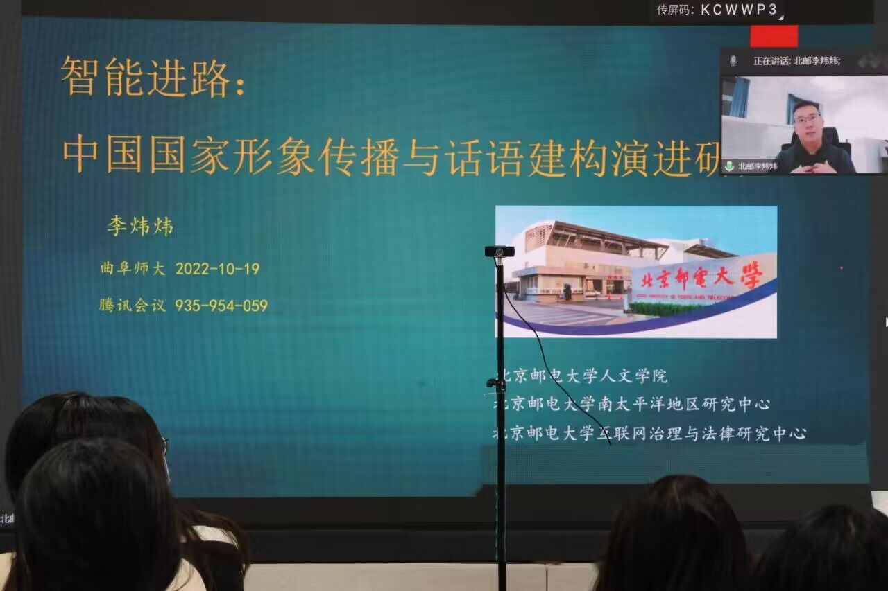 曲阜师大传媒学院讯 聚焦国际传播议题,立足新传前瞻视野,为开拓传媒学子在国际传播方向的视野,江南在线登录入口传媒学院于本学期举办新闻传播青年学者系列讲座第二季,讲座继续延用线上线下结合的形式,邀请了南开大学、北京邮电大学、杭州电子科技大学、外交学院等高校的青年学者,围绕计算传播学的国际传播研究、中国国家形象传播与话语构建演进、国际传播的媒介素养和中国学术旅居者跨文化适应等专题,与相关专业师生进行学术前沿研究分享。传媒学院副院长刘波出席讲堂活动,学院新闻传播系副主任孙浩主持讲堂,与各主讲学者进行学术互动。