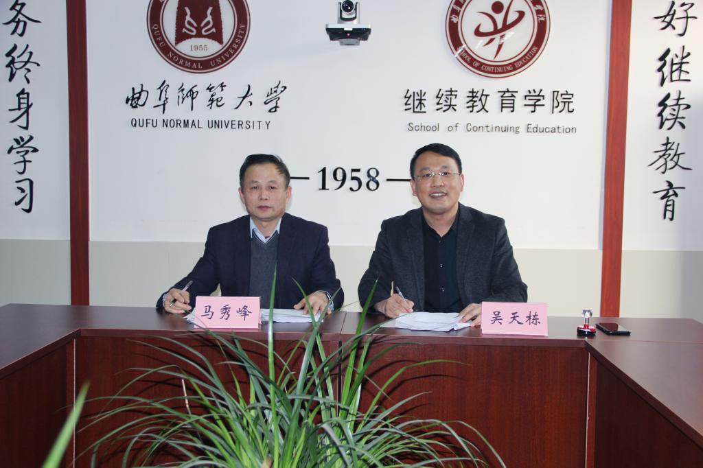 曲阜师大新闻中心讯(通讯员:邢春雷)为提高我校大学生计算机应用能力和全国计算机等级二级证书考试通过率,11月16日下午,继续教育学院与济南现代职业技能培训中心签订非学历继续教育合作协议,共同开展计算机等级考试辅导培训,院长马秀峰、副院长邢春雷、自考培训部部长杨来舜,济南现代职业技能培训中心校长吴天栋参加了签约仪式。