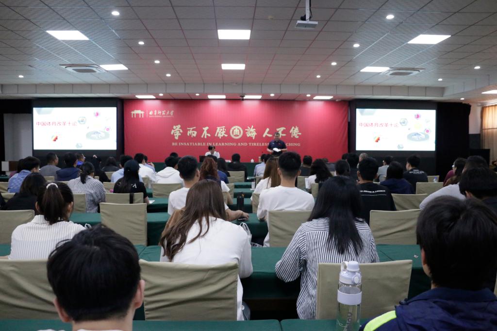 易剑东教授围绕国际体育发展动向和中国体育变革路径做了细致的解读与分析。在解读世界体育发展动向方面,他分析了世界变局与体育困境之间的关系,介绍了国际奥委会、国际单项体育联合会与国家(地区)奥委会的现状。在中国体育目前面临需要变革的方面,重点分析了竞技体育与文明竞争、社会体育与公民权利、学校体育与人才成长、体育产业与经济动力、体育文化与社会活力、当前体育科教与持续发展、体育外交与国家形象、职业体育与竞技氛围、国际赛事与规范化、体育发展与世界和平之间十个方面的关系,详细阐述了中国体育改革的关键性问题。讲座最后,易剑东教授耐心细致的解答了学院师生关于体育制度体系改革、欧美体育差异、民众对体育印象改变等方面的问题,并激励同学们要积极努力,知识改变命运,读书成就未来。
