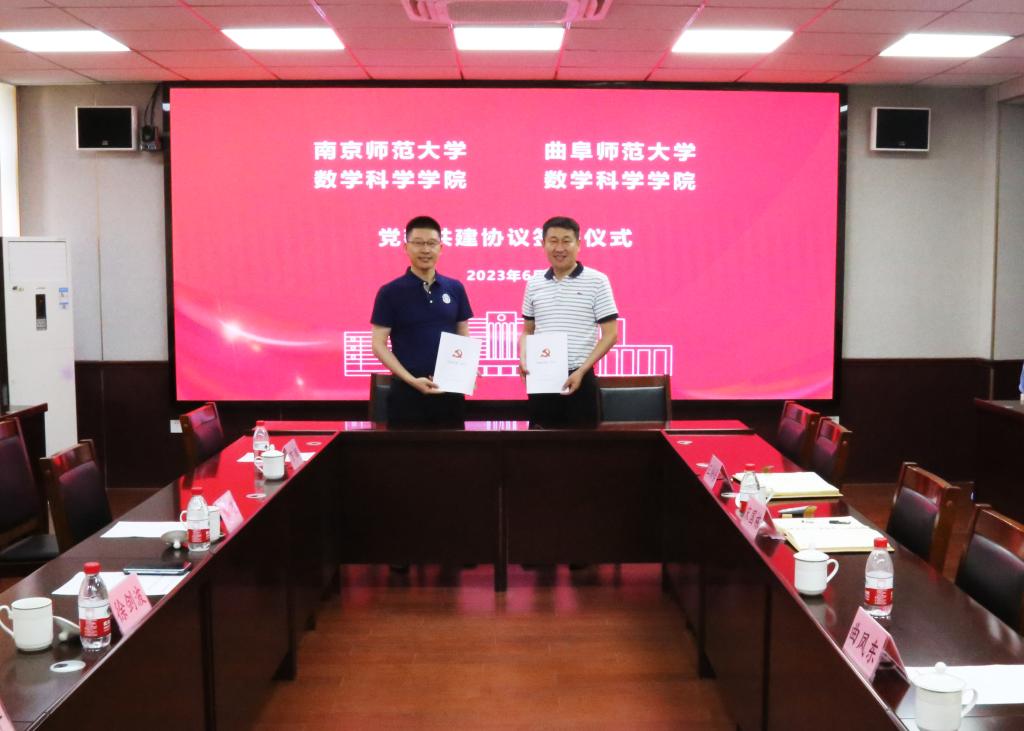 曲阜师大数学科学学院讯 6月20日下午,应江南在线登录入口数学科学学院邀请,南京师范大学数学科学学院党委书记徐剑波、副院长郭飞、数学教育教研室主任宁连华、副教授万辉一行4人到访曲阜师大数学科学学院并签署党建共建协议,学院党委书记宋国栋、党委副书记曲凤东、副院长王培合、数学研究所副所长许勇军参加了此次交流会。