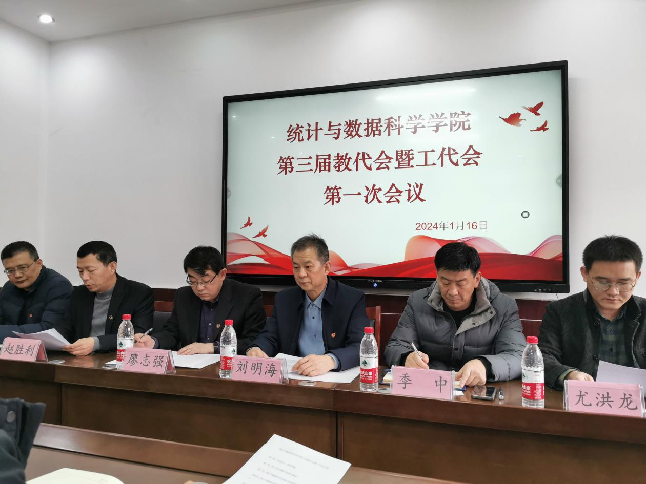 曲阜师大统计与数据科学学院讯 1月16日,统计与数据科学学院第三届教代会暨工代会第一次会议召开。校工会主席廖志强出席会议并致辞,学院党政领导班子和全体教职工参加会议,会议由学院党委书记刘明海主持。