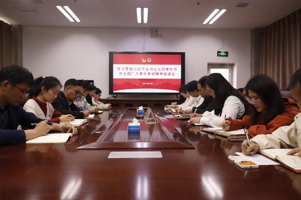 座谈会上,团委副书记张颖带领与会人员重温了习近平总书记五四青年节对全国广大青年寄语,团委副书记李玲传达了共青团中央、全国青联、全国学联、全国少工委印发《关于深入学习宣传贯彻习近平总书记五四青年节对全国广大青年寄语精神的通知》,体育科学学院团委书记刘京、法学院团委书记郑凤霞、学生兼职团委副书记李姝作了交流发言。