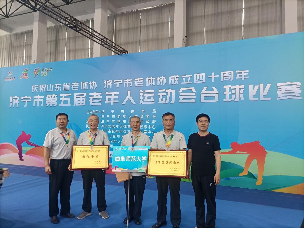曲阜师大离退休工作处讯 5月17日至19日,济宁市第五届老年人运动会台球比赛在兖州体育馆举行。曲阜师大代表队经过紧张激烈的角逐,凭借出色的表现,荣获团体金奖及道德风尚奖,宋连科老师在个人赛中荣获B组铜奖,展现了学校离退休教职工积极向上的精神风貌和团结拼搏的体育精神,为学校赢得了荣誉。