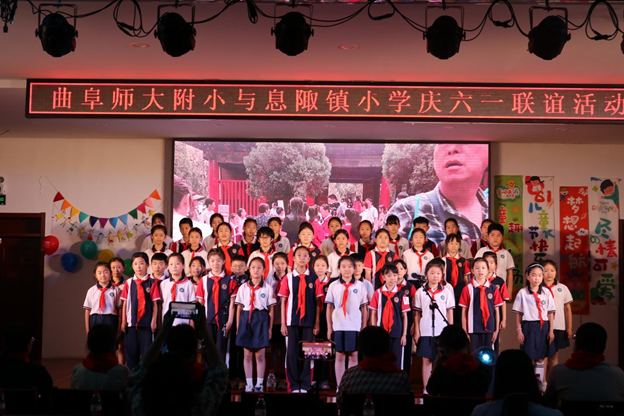 5月29日,学校组织师生代表赴曲阜市息陬镇小学,开展“心手相连 逐梦同行”庆“六·一”校际联谊活动。通过同唱一首歌、同做一件作品、同跳一根绳等方式,增进了青少年之间的了解和友谊,在互相学习、共同进步的良好氛围中,曲阜师大附小的学子们为息陬镇小的学子们赠送了用义卖款购买的“六一”儿童节礼物。
