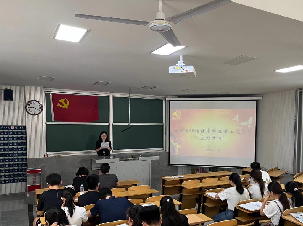 筑牢廉洁思想堤坝,开展党纪学习教育主题党日活动。6月10日至15日,物理工程学院各党支部开展贯彻“学纪、知纪、明纪、守纪”总要求的党性教育活动。党支部书记以“廉洁从业”为题为毕业生党员开展离校前党性教育活动,深入阐释了全面从严治党的重大意义,并结合典型案例,警示同学要勤弹“思想尘”、多思“贪欲害”、常破“心中贼”、慎独慎微,启迪同学们走上工作岗位后要涵养廉洁自律的道德修为,心有所畏,言有所戒,行有所止,并不断锤炼意志力、自制力,谨记职业道德,筑牢思想防线,走好职业生涯第一步。