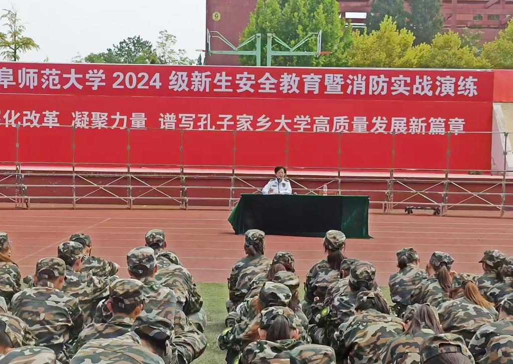 曲阜师大保卫处讯 为帮助大学生树立安全意识,提升安全防范能力,平安顺利度过大学生活,2024级新生军训期间,曲阜师大在两校区召开新生安全教育大会。大会邀请属地公安干警和消防官兵为新生做安全教育报告,并进行实战演练。学校学生工作处、保卫处相关负责同志及2024级新生辅导员参加了教育活动。活动分别由保卫处副处长王光江、孔东升主持。