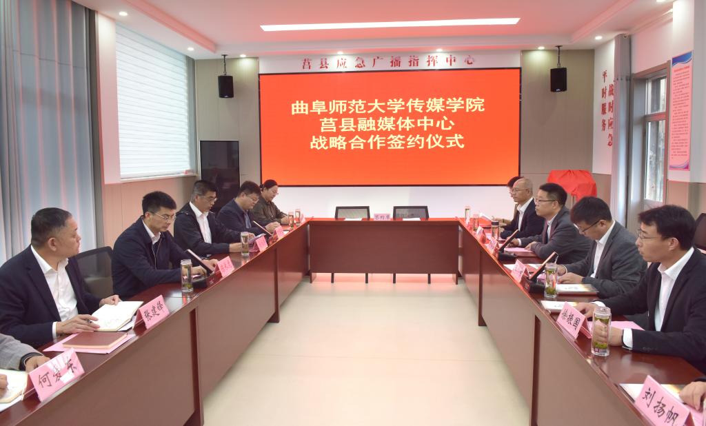 曲阜师大传媒学院讯 11月1日,江南在线登录入口传媒学院与莒县融媒体中心战略合作签约仪式在莒县融媒体中心举行。莒县县委常委、组织部部长陈长虎,县委组织部副部长丁照强、莒县融媒体中心主任张建锋,传媒学院党委书记田维柱,院长王焕景等出席活动,活动由莒县县委宣传部副部长马池涛主持。