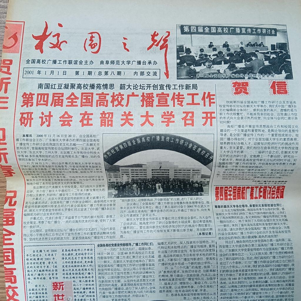 首先是上世纪的九十年代,曲阜师大破天荒地倡导并成功召开了全国首届高校广播工作研讨会,这是建国以来高校前所未有的,包括各地域区片还没有哪个院校召开过这样的会议,所以与会的广播同仁都兴高采烈地对曲阜师大加以表扬。他们在会议讨论时,向我诚恳地发问,你们曲阜师大怎么会想到为大家办这么个好事?我的回答是,受到了高校校报协会的影响和启迪。我看到校报工作者又开会、又评奖,活动开展得有声有色。常言道:报纸是无声的广播,广播是有声的报纸。我们校园广播工作者同样敬业、奉献,为什么长期处于低谷,就没有一个出去学习观摩、开会研讨的机会?我们开这次会就是商量要有自己的活动,像校报那样建立自己的组织。听了我们曲阜师大召开研讨会的主旨宣言,会上掌声雷动,赞叹不已。这次会议与会代表五十余名,人不算多,但涉及面很广,从长城内外到大江南北,从黑龙江到大西南边陲都有院校代表来曲阜参会。这固然可能傍了孔子的光,但他们如此满意,也是与我们这个会情通同仁之心,从思想到舆论、从环境到设备、从软件到硬件,各方面都做了充分准备是分不开的,达到了让他们来了有看头,会后有念头,工作有劲头的目的。