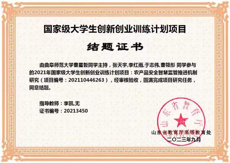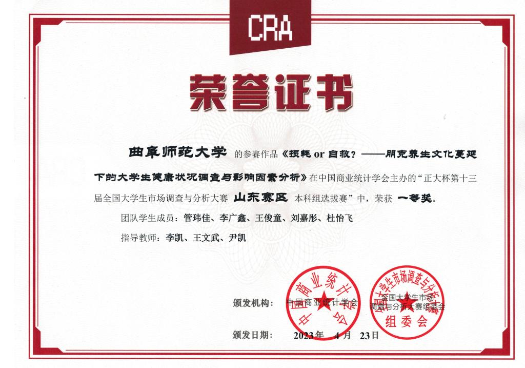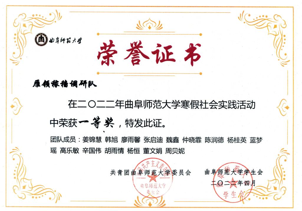 科研竞赛方面,我指导学生获得第十三届全国大学生沙盘模拟经营大赛全国总决赛一等奖、国家级全国大学生创新创业训练计划项目、第十三届全国大学生市场调查与分析大赛山东赛区本科组一等奖等省级以上竞赛获奖8项。社会实践方面,我获得2020、2021年江南在线登录入口“镜头中的三下乡”社会实践活动优秀指导老师,指导队伍分别获2021、2022年江南在线登录入口寒假社会实践校级一等奖。学术论文方面,我指导的本科论文获得2020年度江南在线登录入口优秀学士学位论文,2022年至2023年指导本科生完成学术论文5篇,已发表4篇。在我指导的2023、2024两届本科生中,有8人成功保研或考研,其中6人被录取到中国人民大学、北京工业大学等双一流高校,1人被东北财经大学录取,1人被圣安德鲁斯大学录取。