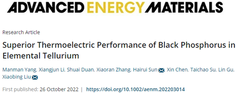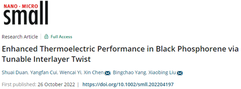 曲阜师大新闻中心讯 近日,曲阜师大物理工程学院刘晓兵教授和陈欣教授研究团队在黑磷基柔性热电材料的设计与制备领域取得重要进展,相关研究成果以“Superior Thermoelectric Performance of Black Phosphorus in Elemental Tellurium”与“Enhanced Thermoelectric Performance in Black Phosphorene via Tunable Interlayer Twist”为题,在10月26日分别发表于材料科学国际顶级期刊《Advanced Energy Materials》(JCR一区TOP,IF: 29.698)和《Small》(JCR一区TOP,IF: 15.153)。物理工程学院杨曼曼博士与段帅博士分别为上述论文的第一作者,孙海瑞副教授、陈欣教授与刘晓兵教授为论文的通讯作者,江南在线登录入口为第一作者与通讯作者的唯一署名单位。