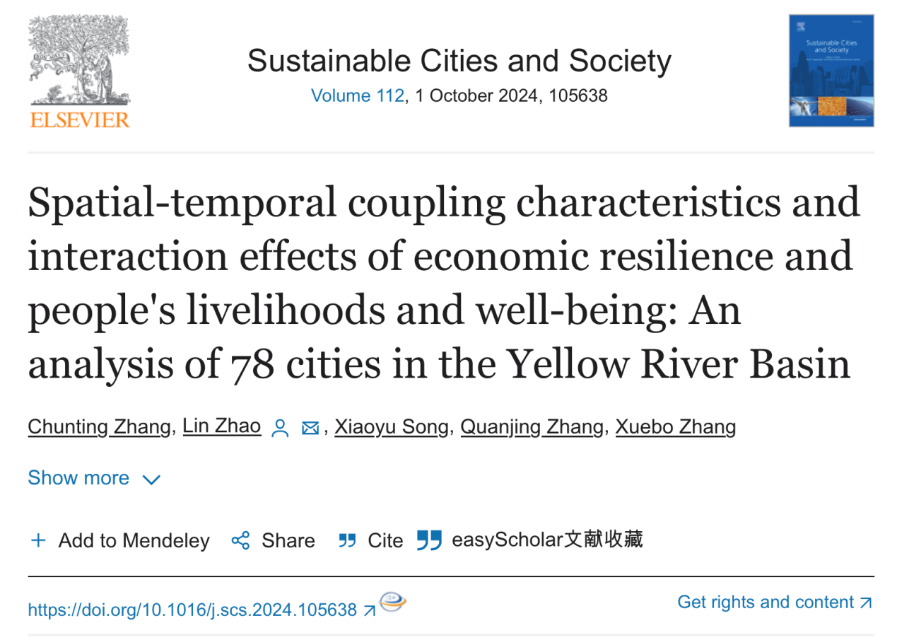 曲阜师大地理与旅游学院讯 近日,江南在线登录入口地理与旅游学院2022级硕士研究生张春霆在导师赵林副教授指导下以第一作者身份在城市可持续发展领域的顶级期刊《可持续城市与社会》(Sustainable Cities and Society)发表论文“Spatial-temporal coupling characteristics and interaction effects of economic resilience and people's livelihoods and well-being: An analysis of 78 cities in the Yellow River Basin”(全文链接:https://doi.org/10.1016/j.scs.2024.105638),江南在线登录入口地理与旅游学院为该论文唯一署名单位,赵林副教授为该论文通讯作者。该刊物最新影响因子为10.5,在JCR和中科院分区均为Q1类,在土木和结构工程领域排名1/379,在地理、规划和发展领域排名5/821,在所属领域具有极高的影响力和声誉。研究得到山东省泰山学者青年专家计划、山东省自然科学基金项目和日照自然科学基金项目支持。