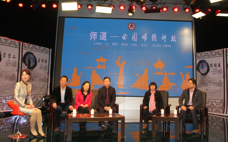 作为师德标兵和优秀教师代表,地理与旅游学院廉丽姝、管理学院李学工、音乐学院陈瑞泉、经济学院刘刚、传媒学院吕爱梅受邀担任主讲嘉宾。五位主讲人围绕着“如何成为一名好老师”侃侃而谈。好老师应传承崇高师德,代代相传,历久弥新,出身于教育世家的廉丽姝通过一张合影,分享了作为优秀教师的父亲对自己的深刻影响;刘刚指出自己讲课方面从老师段文阁那里受益良多;好老师应对所从事专业情有独钟,孜孜以求,陈瑞泉与学生合奏一曲《秋瑟诉》表达了他对音乐的热爱;好老师应对教学勤恳执着,李学工开创“微说”教学模式,几十年如一日在其平凡岗位上教书育人,传道授业;好老师应对学生关系爱护,润物无声,吕爱梅在一碗热面、一颗草珊瑚的生活点滴中对学生呵护备至,被称为“知心姐姐”。