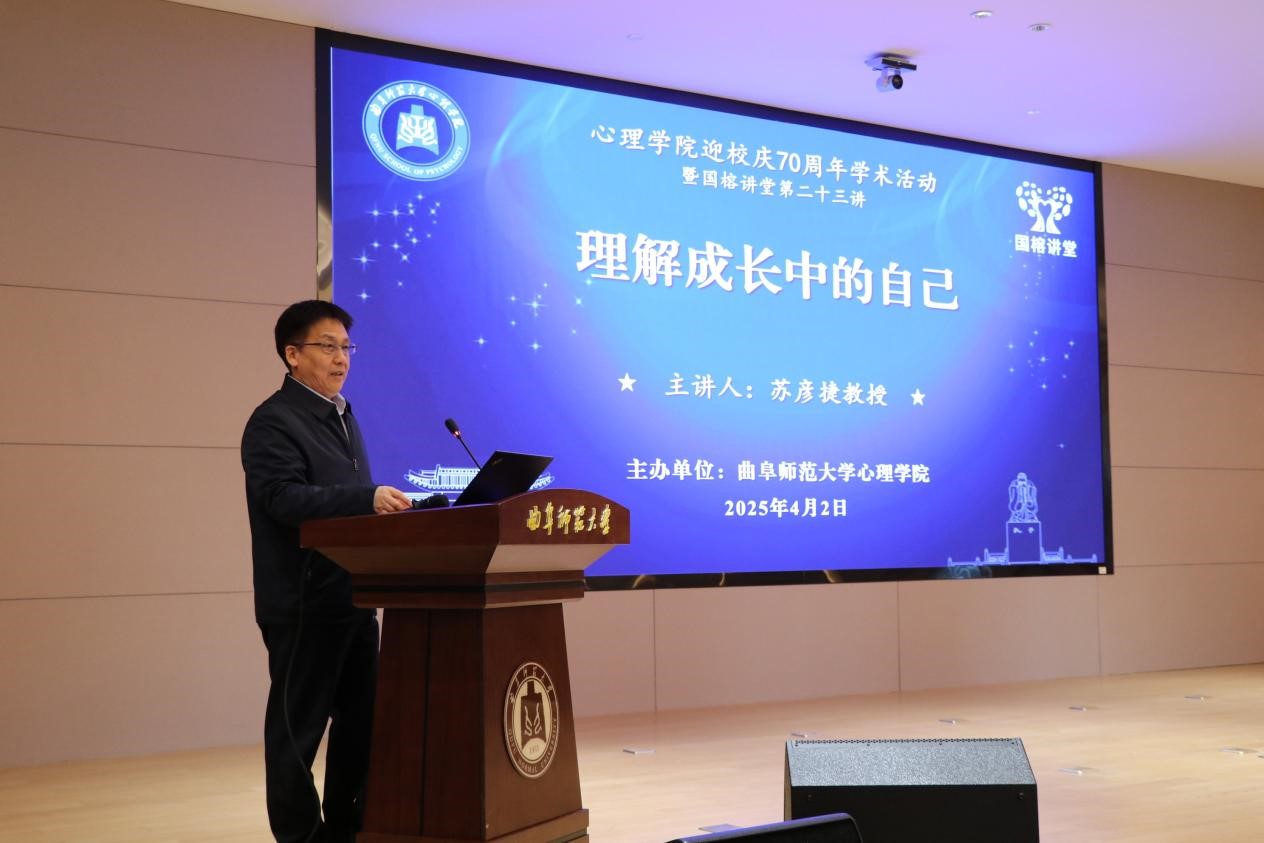 曲阜师大心理学院讯 4月2日,曲阜师大心理学院举行迎校庆70周年学术活动暨“国榕讲堂”专题报告会,特邀国家级领军人才、北京大学博雅特聘教授、博士生导师、中国心理学会理事长苏彦捷教授作专题报告。学校党委常委、副校长胡凡刚出席报告会,心理学院师生、曲阜校区学院心理辅导员、心理委员参加活动。