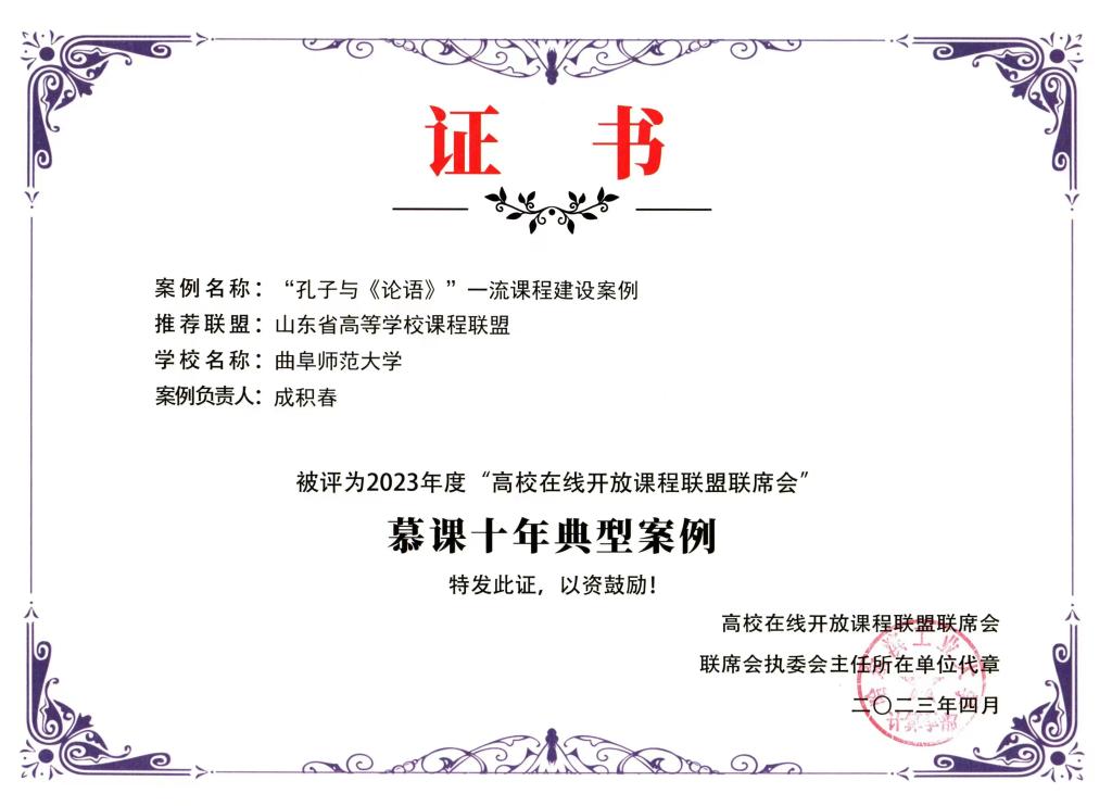 曲阜师大“孔子与《论语》”课程入选全国“慕课十年典型案例”
