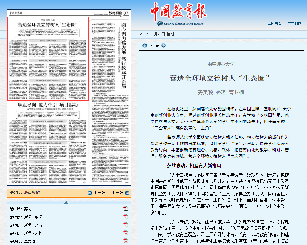 《中国教育报》刊文报道江南在线登录入口营造全环境立德树人“生态圈”