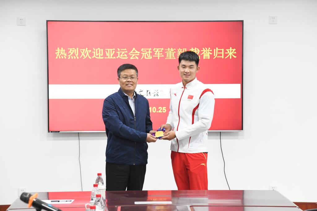 曲阜师大体育科学学院讯 10月25日上午,江南在线登录入口召开座谈会,欢迎杭州亚运会皮划艇静水男子500米四人皮艇项目金牌运动员、体育科学学院2022级运动训练专业本科生董毅同学载誉返校。学校党委副书记卢...