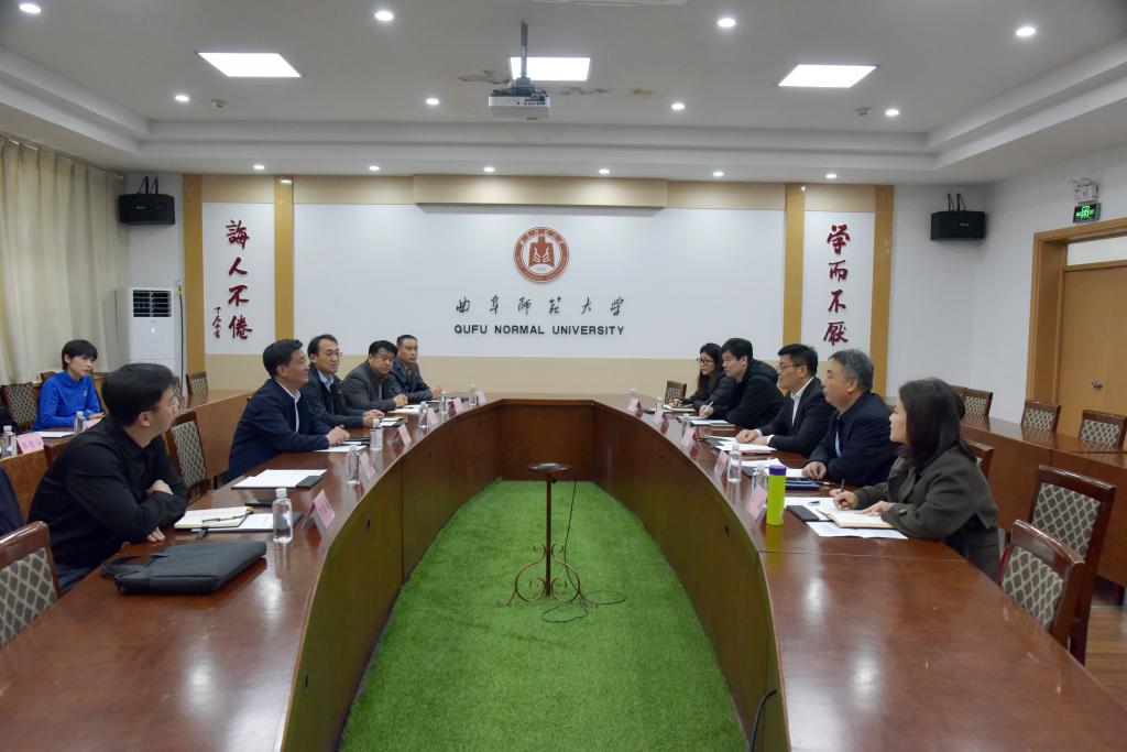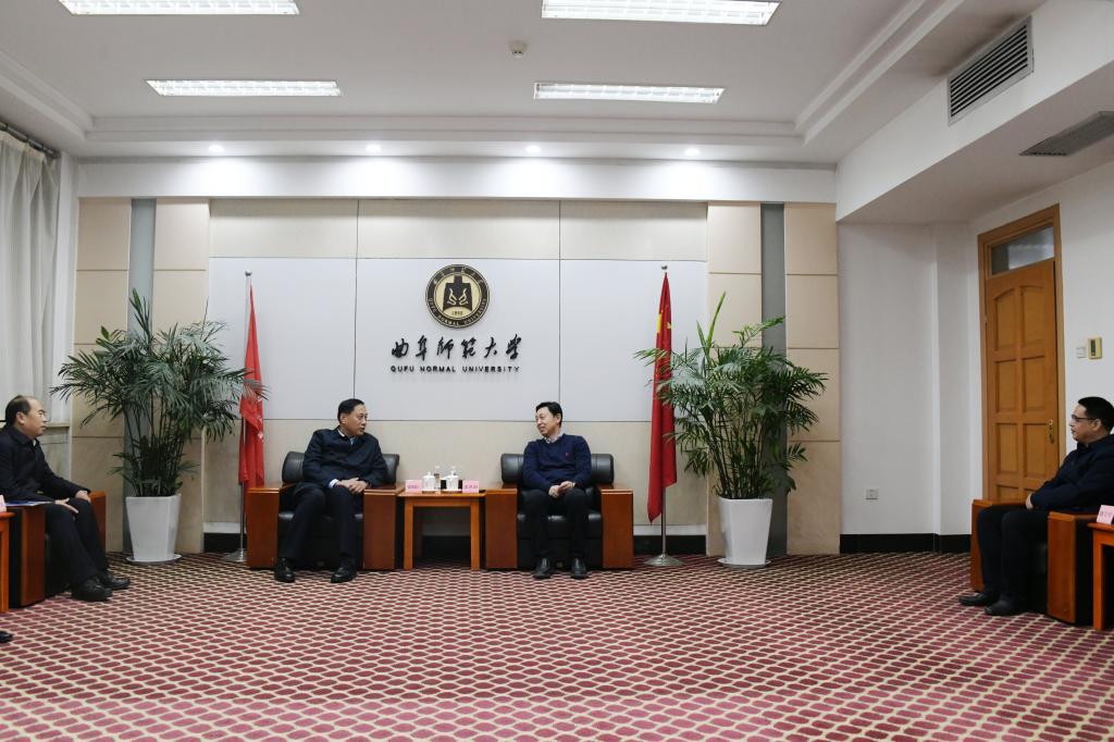 曲阜师大党委宣传部讯 11月15日下午,烟台大学党委书记张殿臣,党委常委、副校长郝曙光一行4人到曲阜师大访问交流。曲阜师大党委副书记、校长张洪海,党委常委、纪委书记、监察专员路学堂会见了来访客人...