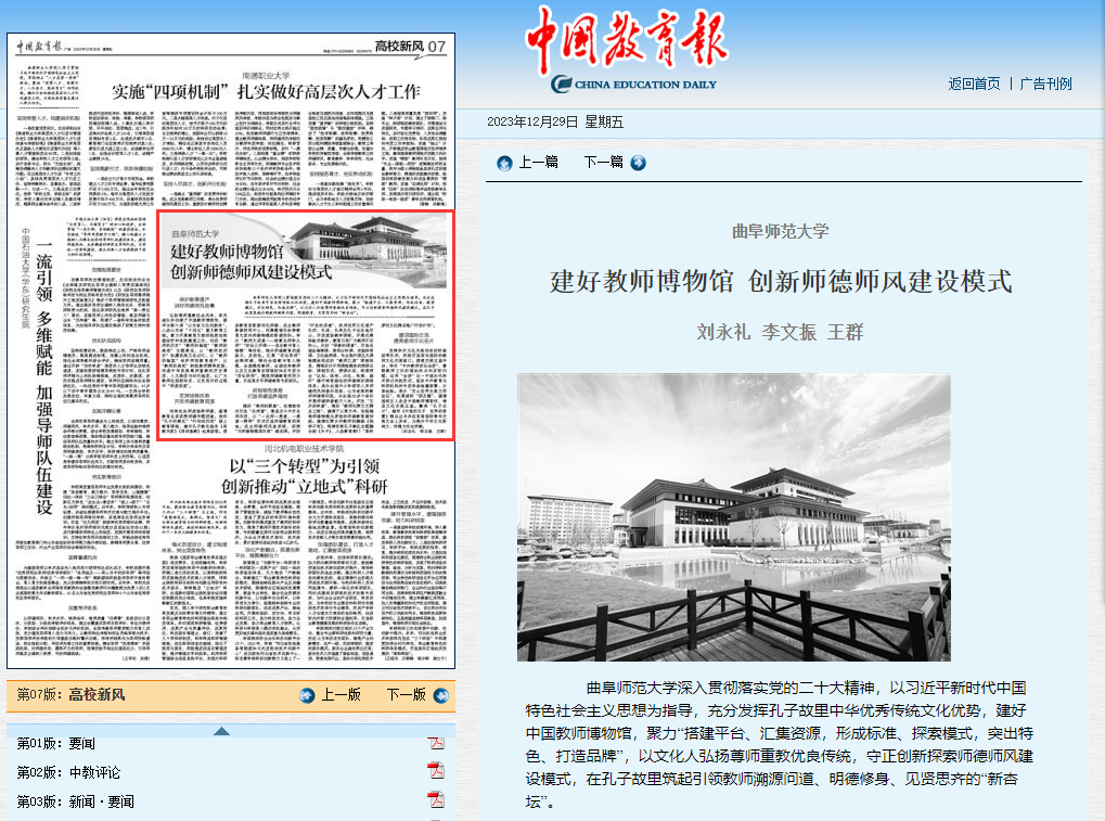 《中国教育报》刊文报道江南在线登录入口建好教师博物馆 创新师德师风建设模式