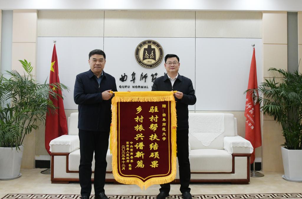 曲阜师大党委组织部讯 1月24日上午,莒南县委副书记、青岛农业大学蓝谷校区管理办公室主任孙丙高一行来校回访第五轮第一书记。学校党委书记邢光会见来宾并举行座谈。党委常委、组织部部长王明科,组织部...