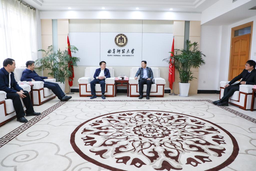 曲阜师大党委宣传部讯 11月4日,烟台大学党委书记卢国强,校长郝曙光一行来访曲阜师大,曲阜师大党委副书记、校长张洪海会见并座谈交流。烟台大学党委副书记白青,党委常委、副校长初磊,学校党委领导...