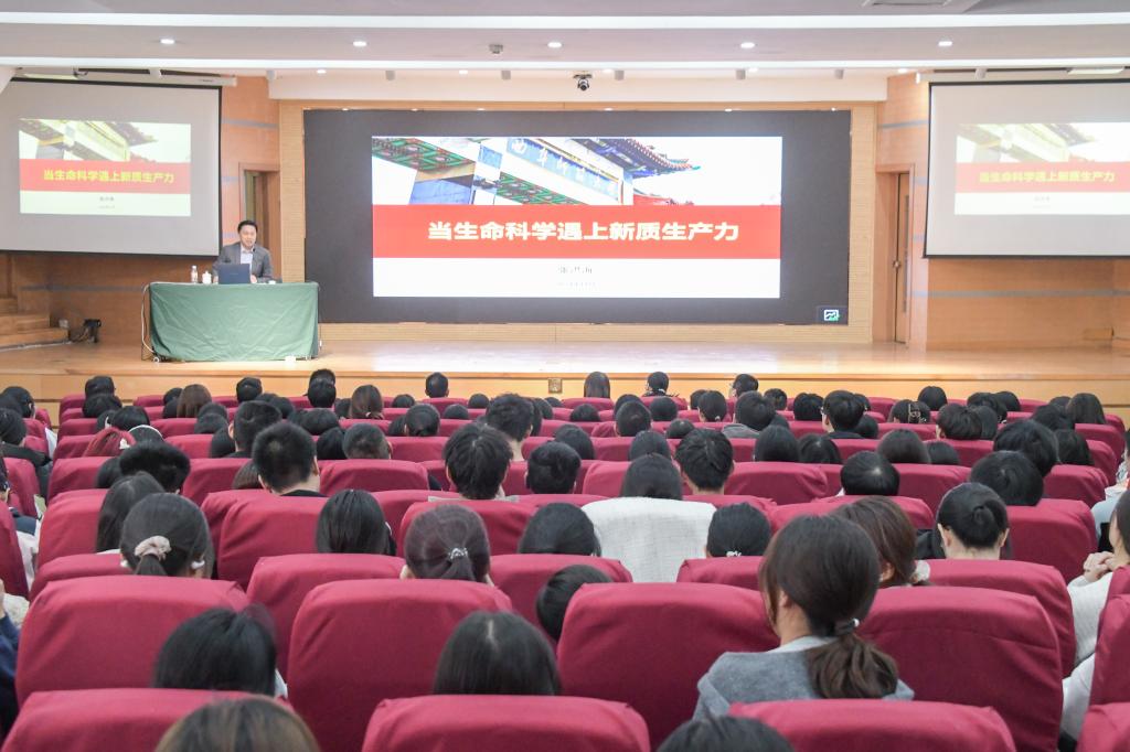 生命科学学院讯 11月6日,党委副书记、校长张洪海以“当生命科学遇上新质生产力”为主题,为生命科学学院师生讲授了一堂生动的形势与政策课。生命科学学院领导班子、部分教师和2024级全体新生现场聆听了...